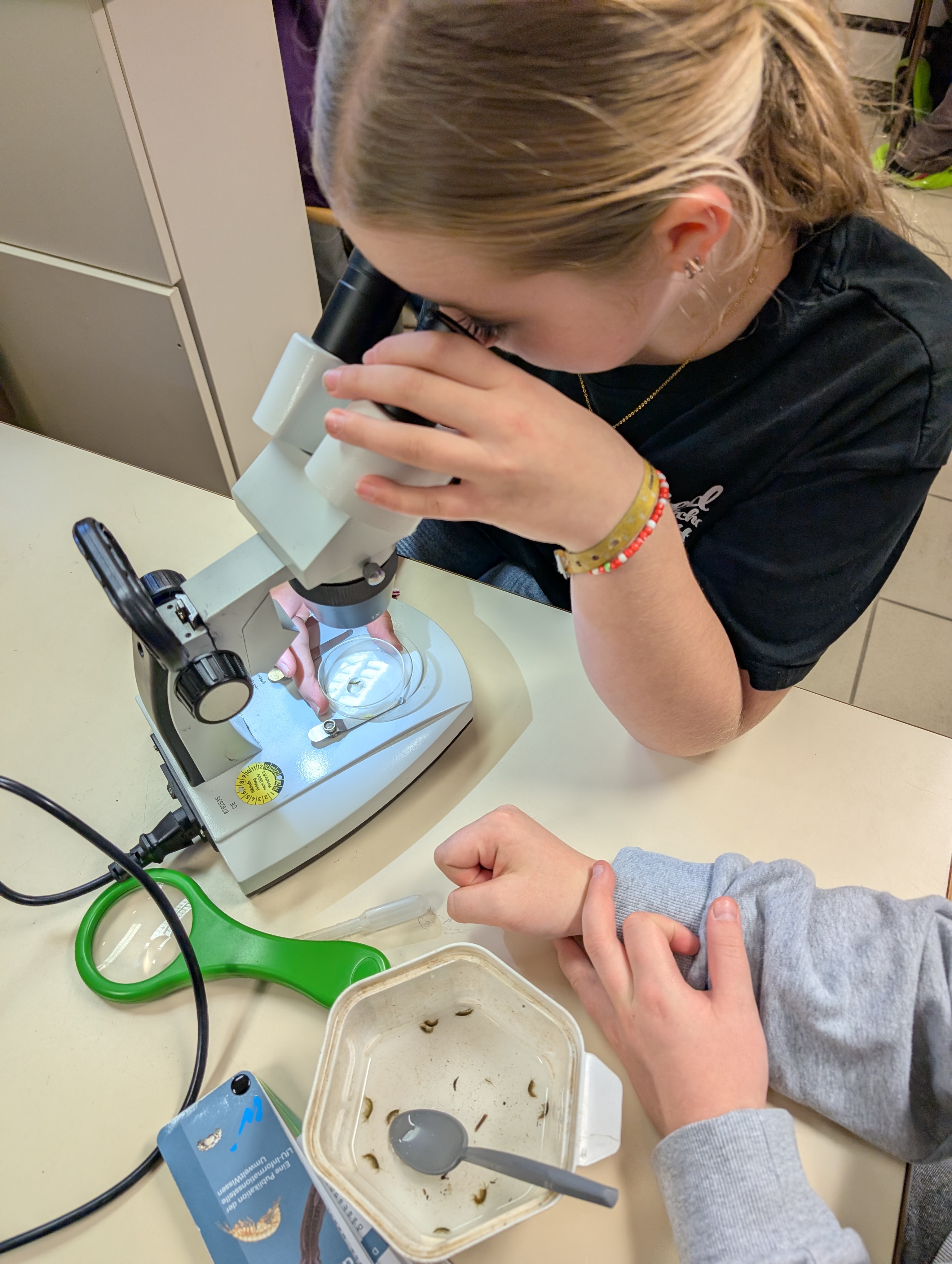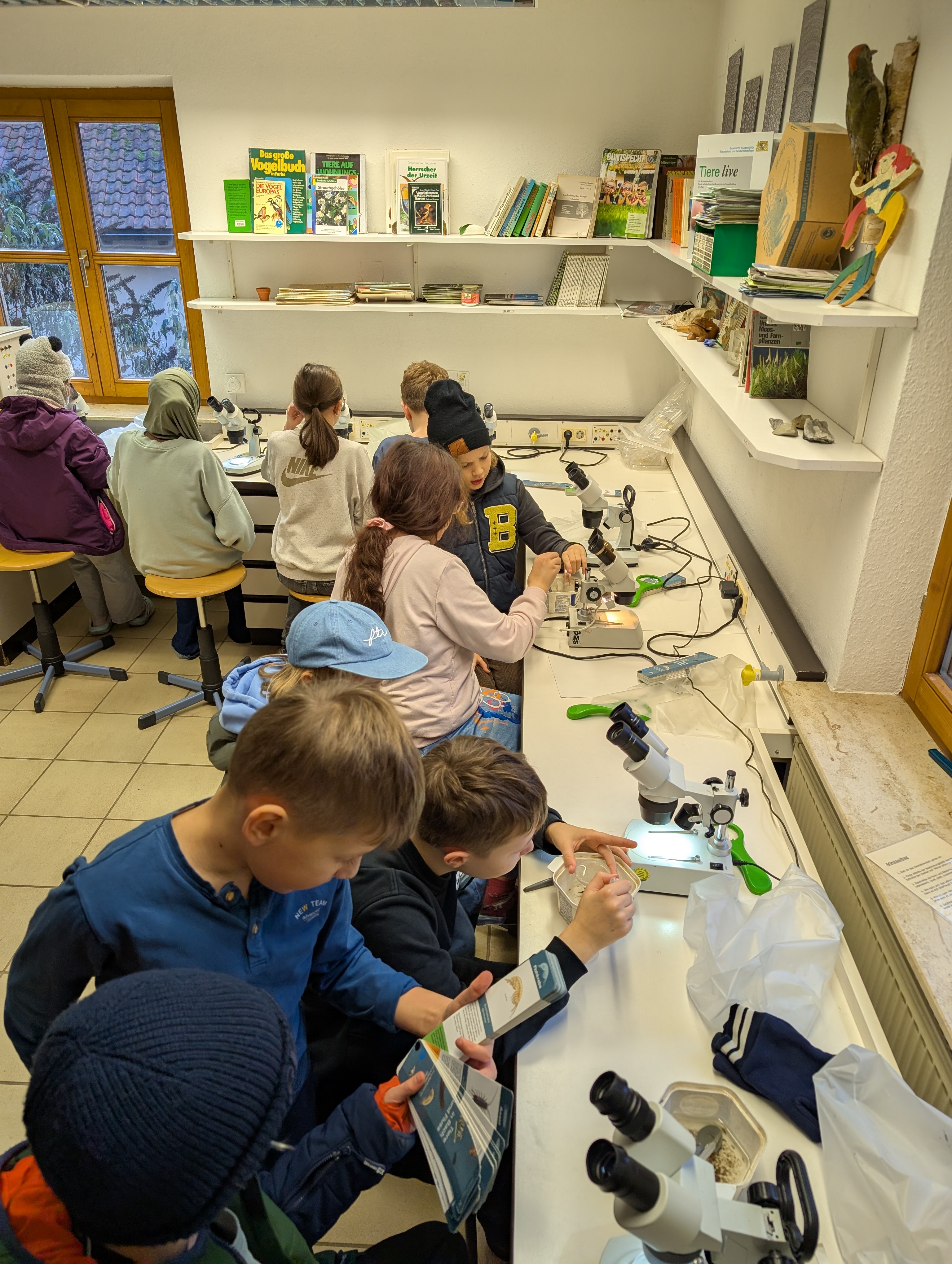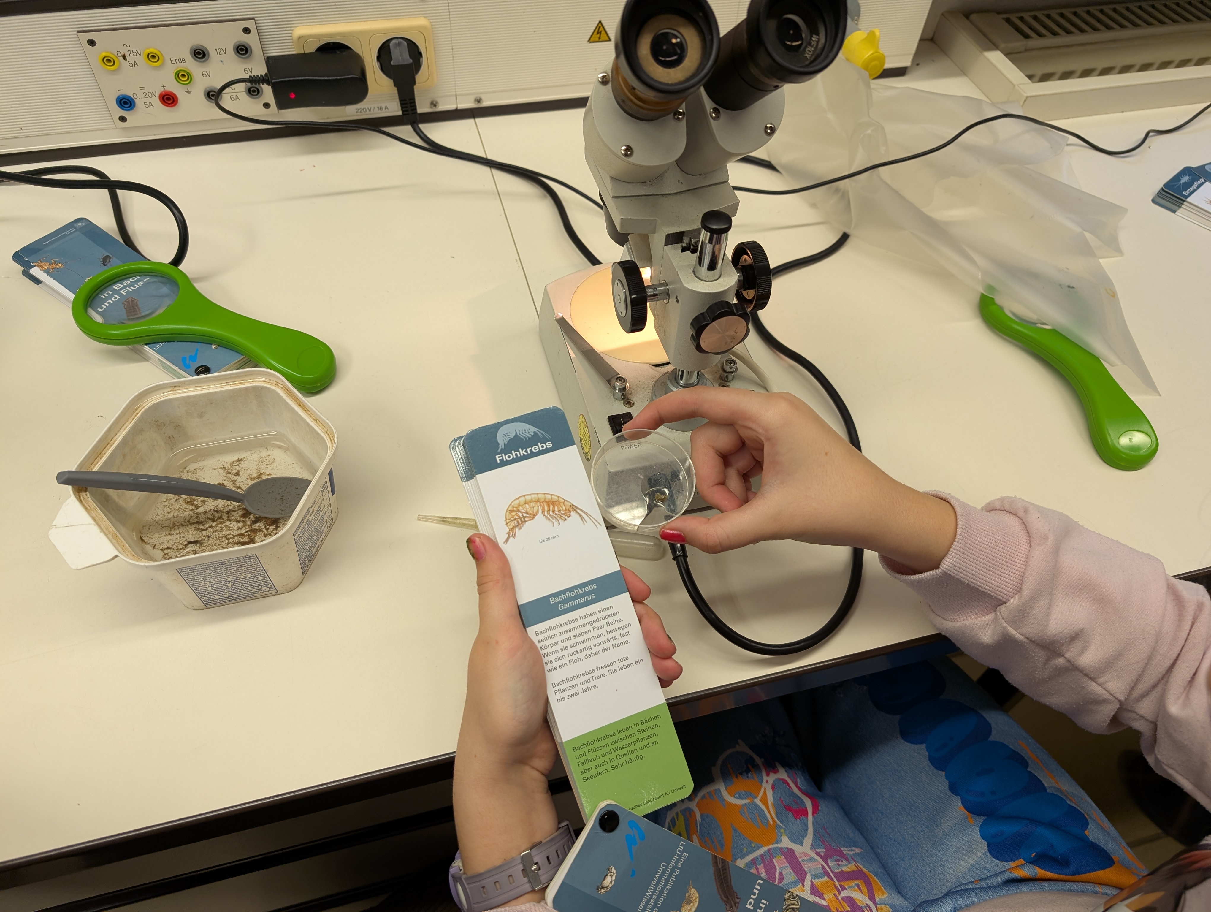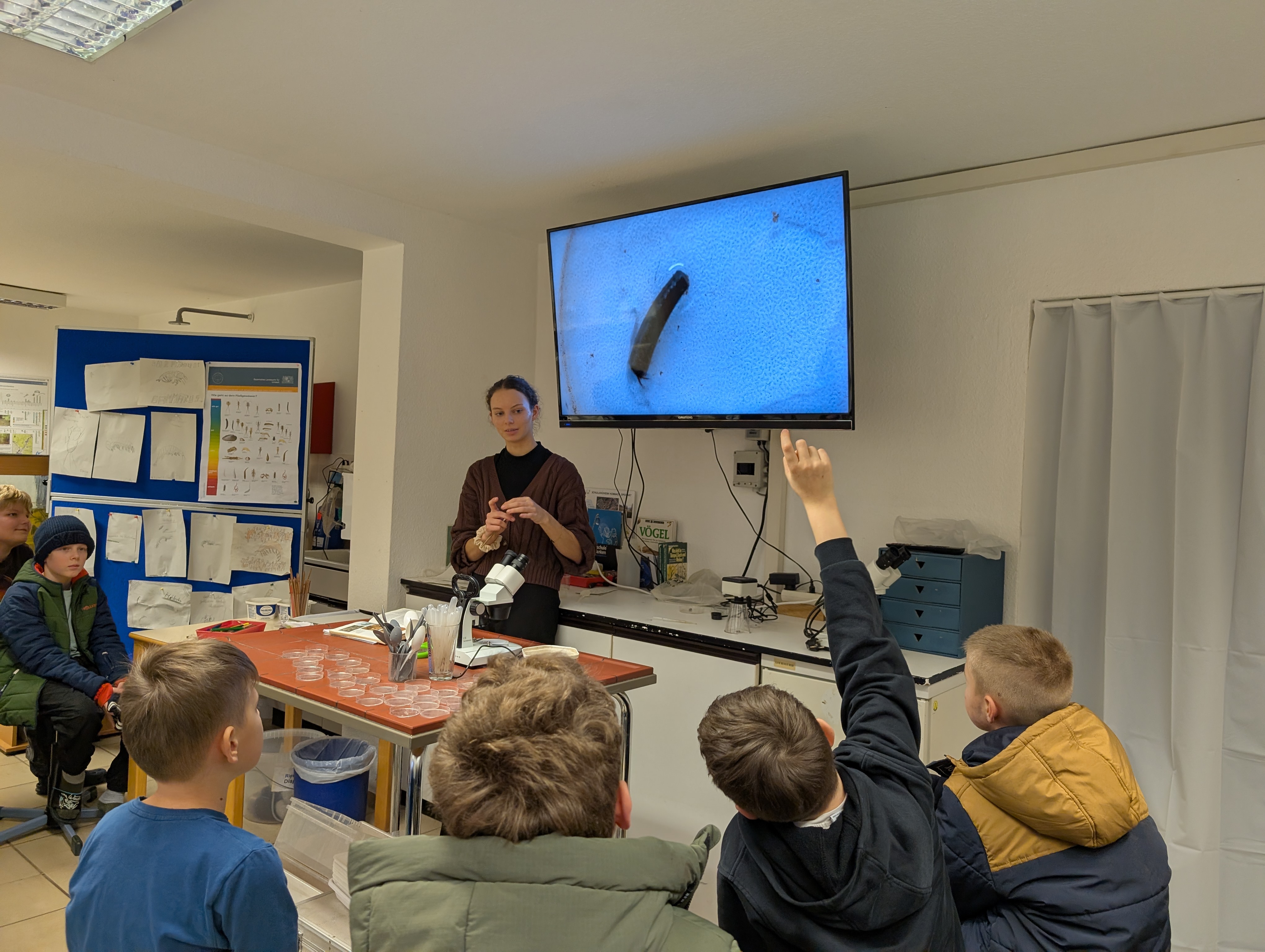 In der Woche vor den Weihnachtsferien verbrachte die Klasse 5e vom 15. bis 17. Dezember gemeinsam mit ihrer Klassenlehrerin Frau Schäfer und Herrn Specht erlebnisreiche Kennenlerntage im Schullandheim Hobbach. Als außerschulischer Lernort bot das Schullandheim vielfältige Möglichkeiten, Unterricht praxisnah und anschaulich zu erleben. Beim Projekt „Fließgewässer“ erkundeten die Schülerinnen und Schüler – ausgestattet mit Gummistiefeln, Sieben, Pinseln und Schüsseln – den naturnahen Mittelgebirgsbach Elsava. Dabei sammelten sie verschiedene Wasserlebewesen, die anschließend im hauseigenen Labor bestimmt und dokumentiert wurden.