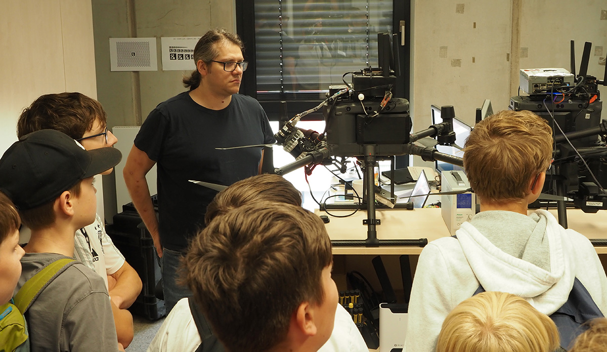 Am Donnerstag, den 17. Juli, besuchte eine Gruppe technikinteressierter Schüler verschiedener Jahrgangsstufen das Zentrum für Telematik am Hubland. Der freiwillige Ausflug richtete sich an diejenigen, die sich besonders für moderne Technologien wie Drohnen, Satelliten und Automatisierung begeistern.