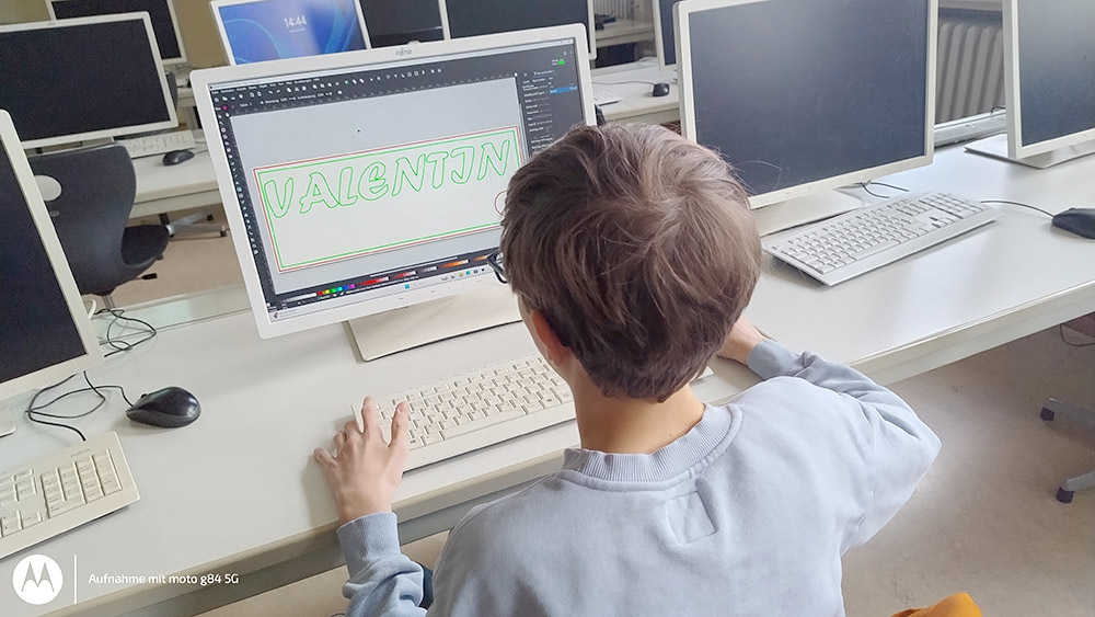 Ansonsten toben wir uns im Maker Space aus, in dem wir z. B. am PC gezeichnete Figuren und Schlüsselanhänger vom Laser-Cutter ausschneiden lassen.