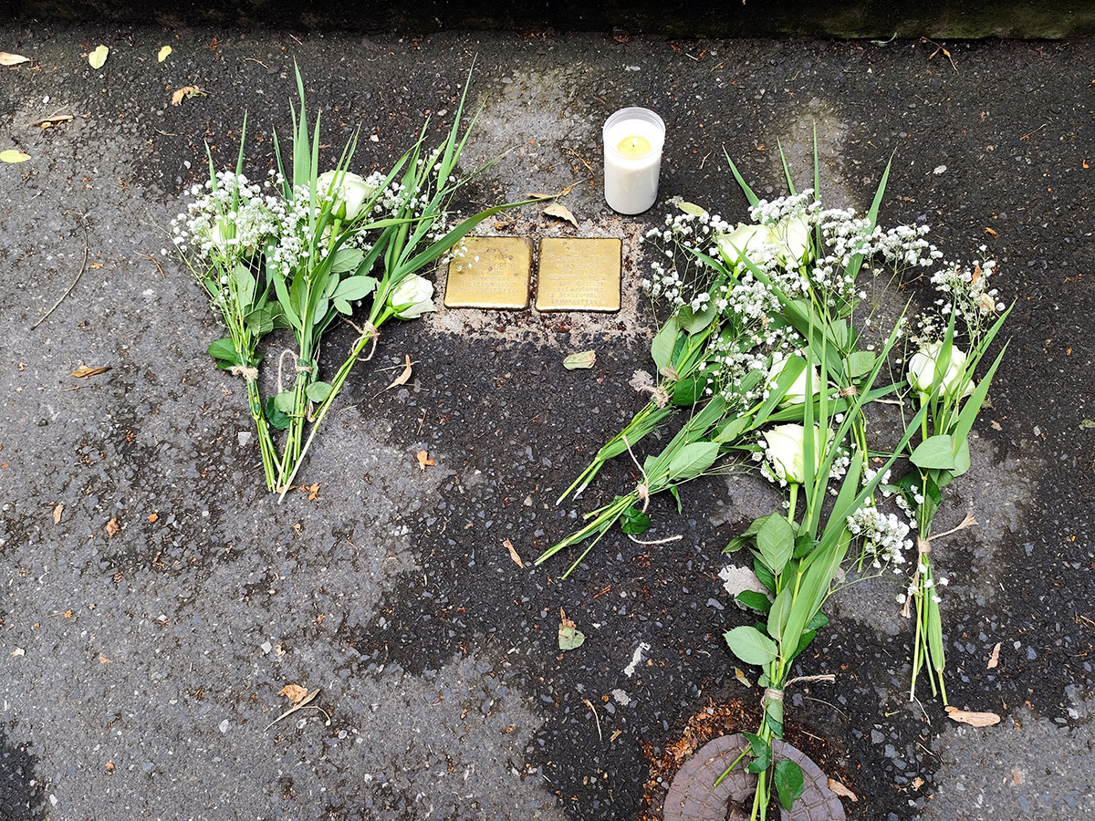 09.07.2025: Endlich ist der Tag unserer Stolpersteinverlegung gekommen. Die Klassen 9c und 9d haben sich im Geschichtsunterricht mit den Biographien des Ehepaars Dannenberg beschäftigt, deren Stolpersteine im Rahmen der 35. Verlegung am Berliner Platz 4 nun der Öffentlichkeit übergeben wurden. Dazu haben wir eine kleine Gedenkveranstaltung organisiert.