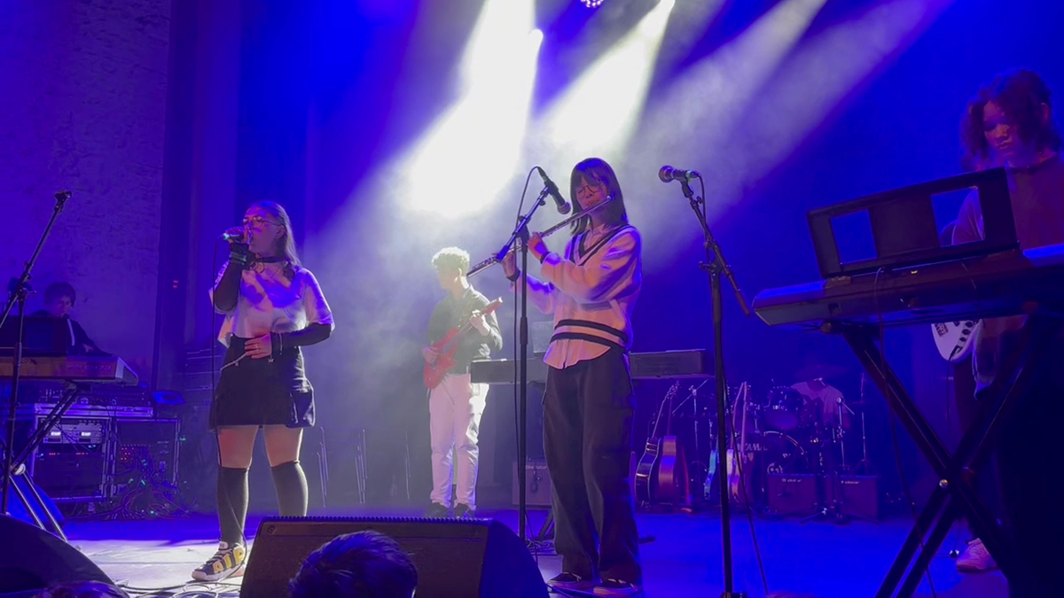 Am frühen Abend schließlich war die letzte Kategorie des Wettbewerbs an der Reihe, die Schulbands der Jahrgangsstufen 7-10. In den letzten Jahren errangen die Bands um die charismatische Sängerin Ioanna Gkrigkorian insgesamt zweimal den 1. Platz und einmal den 2. Platz bei in diesem Wettbewerb. Das Stück „Bite me“ von Avril Lavigne begann mit einem melodiösen Solo der Bassistin Francesca Musetescu-Vasiliev, begleitet von der Pianistin Emely Ascenzi. Maya Soukieh und Kevin Heibel an der Gitarre lockerten das Arrangement mit einem bluesgefärbten Solo auf. Der Schlagzeuger Noah Langer führte die Band sicher durch die vielen Tempowechsel und die Keyboarder Emre Korkmaz und Erik Zuschlag legten mit ihren Akkorden ein Fundament. Die Sängerin Ioanna Gkrigkorian schließlich überzeugte sowohl Publikum als auch Jury mit ihrer erstaunlichen Bühnenpräsenz und einer professionellen Stimme. Ob es nun die leisen und leichten Melismen des Anfangsteils oder die kraftvolle und strahlende Höhe im Refrain war, da stimmte jeder Ton und jede Bewegung. Das fand dann auch die Jury und so verwunderte es nicht, dass die Schulband der Jakob-Stoll-Schule ein weiteres Mal einen 1. Preis mit nach Hause nehmen konnte.