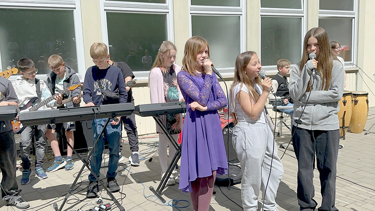 Die Band der 6s spielte den Titel „Ich bin zu Hause“ von der ukrainischen Sängerin Tember Blanche (Video 6s -Band Tember Blanche- Ich bin zuhause) und die Schulband „Stairway to heaven“ von Led Zepellin. Besonders die Schulband mit ihrem Klassiker aus den 1970er-Jahren zauberte ein Lächeln auf die Gesichter einiger Gäste, die sich offensichtlich an ihre Jugendzeit erinnerten. Gegen Ende standen die Zuschauer und klatschten begeistert mit.